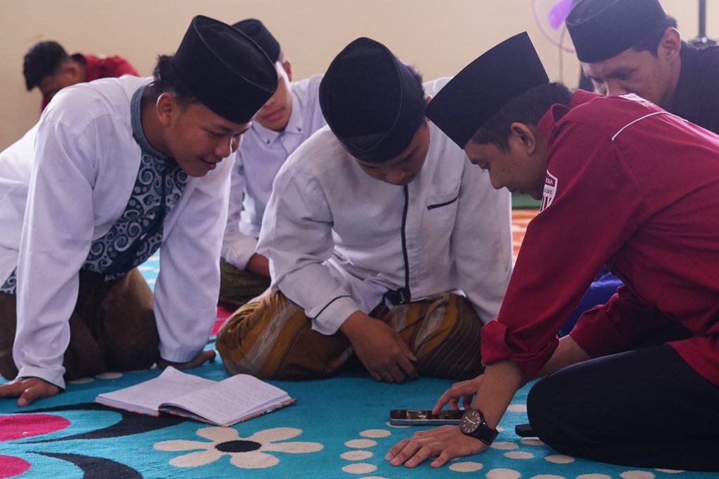 Para santri saat praktik memproduksi video bersama pemateri.